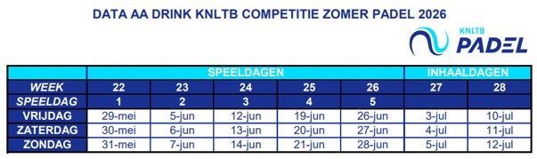 De inschrijving voor de KNLTB zomer competitie 2026 padel is geopend!
